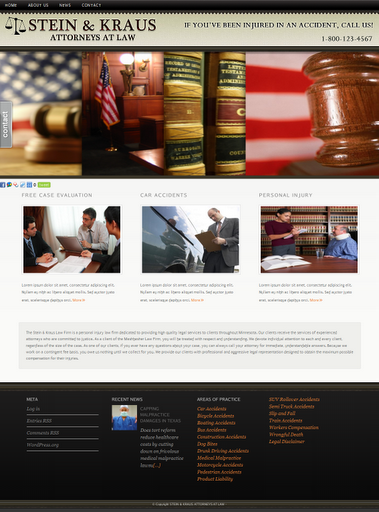Description: Law site with front page organ slider, featured pages sections, recent articles section, Google map, blog enabled with share options and Social Networking integration.