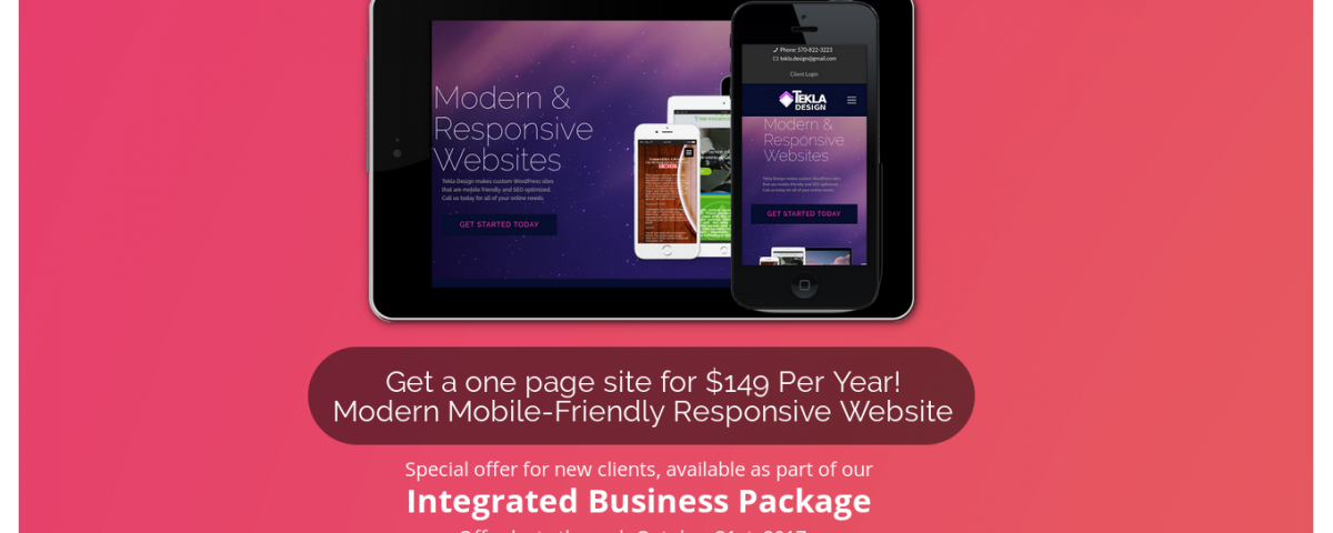 Get a one page modern responsive website for only $149 a year!
